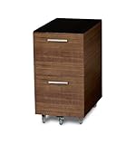 Sequel 2-drawer mobile file pedestal accommodates letter- and legal-sized files, features micro-etched, black tempered glass top, and is designed for use beside Sequel Desk, Return or Compact Desk to extend the useable worksurface. 29"H x 15.5"W x 24"D
