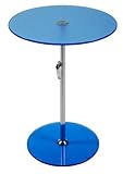 Features: Chrome column Adjustable height Suitable for commercial use Available in black, blue, yellow, green, red, or frosted glass Overall dimensions: 19"-31" H x 18" W x 18" D