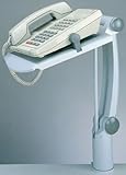 ErgoFlex Phone Stand features a swivel arm and convenient handle for height and position adjustment of the platform. Allows you to place the phone at a comfortable dialing distance - whether you are standing or sitting - without wasting space. Unique arm design hides phone wire. Heavy-duty clip holds phones up to 9" wide and desk clamp fits desks up to 3" thick. Easy installation.