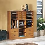 Features Nine cube openings can be configured for various storage needs. Openings accommodate shelves, dividers, or drawer sets. Includes 13 shelves/dividers, four large drawers and four small drawers. Drawer pulls accommodate ID label tags. Caramel Birch finish. Dimensions W:45" (114.4cm) D:14 1/2" (36.8cm) H:48 1/2" (123.1cm)