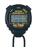 The Accusplit AX725 Stopwatch features a high-impact, durable case, one-million-cycle, no-fail-buttons, super-large, 2 giant line readouts and a 5-year lithium battery. Includes time-out, 10-hour timing range, Cumulative and Lap Splits, 16-memory and is water resistant to 100 feet (30m). Black.