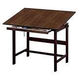 Alvin Titan collection 42'' wide 4post drafting table is constructed from the finest quality solid red oak. Walnut finish is well protected by two coats of clear lacquer. Warpfree tabletop has a longlasting laminate finish.Drafting table features a tilt mechanism that enables the user to quickly and easily adjust the top angle from 0 to 45 degrees. Storage drawer provides a convenient space for supplies.Ships ready to assemble.