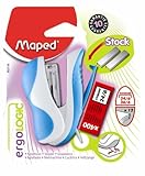 The Maped Ergologic line is the first range of office accessories designed in conjunction with a firm of internationally recognized professional ergonomists. The Maped Mini Ergologic Stapler is soft and cushioned on the pressure zones. It features a receptacle for 2 bars of spare staples and can securely fasten up to 15 pages for a stapling depth of 1 inch. It includes a built-in retractable staple remover and 400 staples to get you started. You can even see how many staples are left without opening the stapler. With a variety of stylish and functional products for adults and kids alike at home, school, or the office, Maped continues to reinvent ways to let you express yourself freely! For over 60 years Maped has been creating innovative, high-quality products and renewing the often traditional school and office accessories markets with an assortment of eye-catching products tailored to the needs of the consumer. Maped is an expert in providing attractive and functional school, artist, and office products to over 125 countries all over the world!