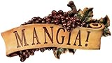 It's just what Grandmother used to say! "Mangia!" (Eat!) is proclaimed across dinner tables in Italy and beyond. Evoke the warm feelings of a Tuscan kitchen with this scrolled, grape-laden wall plaque, cast in quality designer resin and hand-painted as a perfect gift for yourself or someone who always welcomes you warmly. See Additional Views for set details. Approx. 12.5"Wx2.5"Dx7"H. 1 lb.