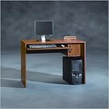 Sauder Beginnings collection computer desk is constructed of engineered wood with a Pecan laminate finish.Computer desk features a slideout keyboard/mouse shelf with metal runners and safety stop, and a convenient storage area behind door (101/2''W x 173/8''D x 43/4''H).Ships ready to assemble.
