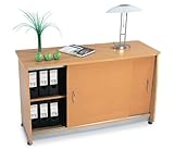 811588016525 Finish: Maple and Silver This Sliding Door Credenza is is perfect for small meeting areas that require a bit of storage space while keeping a classy and organized look. It is a perfect item with a contemporary design coupled with an affordable price. Features: -Credenza has one storage shelf behind sliding doors -2 scratch-resistant thermofused melamine finishes: Maple with silver hardware or graphite with black hardware -Overall dimensions: 55 1/4''W x 20 1/2''D x 32 3/4''H -Maple top has Maple self-edge -Graphite top has black t-mold edge -Leveling glides keep unit steady -No tools required for assembly