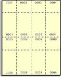 50 Sheets of Cream, Pre Numbered Laser or Ink Jet Tickets with Numbered Stub. 8 Tickets per sheet, 400 Tickets per package. 8-1/2" x 11" sheets can be Laser or InkJet Printed, then separated into individual tickets, each with a numbered ticket, and numbered stub.