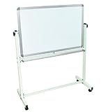 Whiteboard on both sides. Aluminum look frame around board. White paint finish on frame. Both sides are magnetic. 4 Casters for easy mobility. 3 Board sizes to choose from. Frame base is 23 deep.