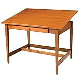 Alvin Vanguard collection drawing table has a 3/4'' thick, natural birch veneer top solid rubber wood legs. This classic 4post wood table is perfect for art, crafts, drafting, or any kind of creative work in the home, office, or studio.Drafting table features a 36''x48'' warpfree work surface, a onehand ratcheted tilt mechanism that adjusts the angle from 0 to 25 degrees, and a storage drawer with adjustable dividers. Pencil ledge at front of table can be set flush or elevated. Tapered legs are 2'' square at the top for stability, and a footrest is included for comfort.Ships ready to assemble.