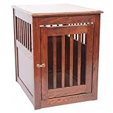 A Solid Oak Pet Crate With Style. This handcrafted solid oak pet crate is available in beautiful Mahogany, Cherry and Burnished Oak finishes. More than just a dog crate, its a piece of fine furniture. This pet home is just the right size for your dog's favorite pet bed or crate pad and is perfect as an end table in you family room or bedroom. You don't have to settle for the same old plastic or wire pet crates anymore. With plenty of ventilation and a door latch, this pet crate keeps your pet safe night and day. Even though this is a solid oak wood pet crate, you won't have to worry about clean-up. The easy to clean Extira trade; waterproof crate floor eliminates the absorption of liquids and odors. Access for you and your pet is simple too. A swinging door contains your pet at nighttime or lets him come and go. The door can also swing inside so it's out of the way. Because we care deeply about the environment, our customers and your pets, all of our finishes are Water Based, Form...