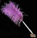 Purple Ostrich Feather Plume Pen Set includes ink pen and gold filigree base pen holder
