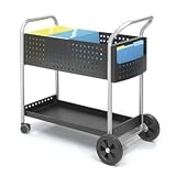 5239BL This handy mail cart features steel construction for a durable product and modern styling for everyday use around the office. Oversized casters and a convenient handle and side pocket make this cart easy to use. The top basket will hold legal-size folders and the bottom shelf can hold packages of various sizes. A lip around the shelf keeps packages from sliding off in transit. Features: -3'' front swivel casters -8'' rear wheels -Steel construction -Top holds legal-size files -Assembly required -Overall Dimensions: 40 3/4'' H x 22 1/2'' W x 39 1/2'' D Click Here to View Safco's Limited Lifetime Warranty