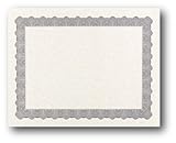 This certificate features a beautiful silver border on a parchment background. It measures 8 1/2" x 11" and is created for use in both inkjet and laser printers. The writing space inside the certificate measures 5 7/8" x 8 3/8". Our blank certificates are made from 24 lb bond (90 GSM) paper.
