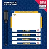 4 pack magnetic dry erase boards with marker and eraser included. Great organizer for home, school or office
