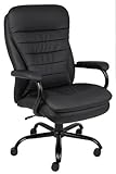 Big mans chair. Heavy duty spring tilt mechanism. Pneumatic gas lift seat height adjustment. 27-inch brushed metal five star base. 3-inch double wheel casters. Weight capacity 350lbs. Upholstered in black caressoftplus.