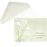 Graceful calla lilies and a simple sympathy acknowledgment appear on the front of this Pearl White Kid Finish note. The inside is blank for you to share your own thoughts and words. Matching white envelopes are included.
