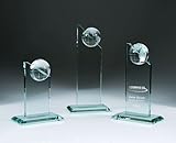 Jade Glass World Globe Pinnacle Award - Large. Excellent choice for that special event. Great for any corporate or school award ceremony. The half optical crystal globe that is attached to the top of the award gives this peace an elegant look.Item dimension is 10-1/2"H X 5"W X 3"D. Item weight with box is 2.6 lbs. Material is Jade Glass with Optical Crystal half globe.The price of the item displayed includes an Engraving/Etching area. Additional fee applies below for Engraving/Etching. Available area for Etching is 7" x 3".