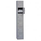 Vertical louvers provide ventilation to contents. Full-length door stiffeners add rigidity and deaden sound when opening/closing. Padlock hasp on door for security. Number plates for locker provide order and identification. Number of Shelves: 6. Color: Medium Gray. Dimensions: 72inch H x 12inch W x 18inch D. 30% post-consumer recycled content. Number plates for locker identification and padlock hasps on each door are included. Multiple rows of lockers can be ganged with standard nuts and bolts (not included). Single stack with 6 compartments. Each compartment is 12inch H x 12inch W x 18inch D. Includes locking hasp that a padlock can be used on