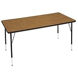 Adjustable Height Utility Table 30'' x 72'' is designed for years of active use. For durability and to keep its good looks, top surfaces are high pressure laminate that are stain and burn resistant.Top edges have live plastic ''T'' bumpers for sure protection. The legs are heavyduty 14 gauge tubular steel that is affixed to the welded underframe plate and that prevents warping. Standard adjustable legs allow you to range the height from 22''30''. At the leg bottom are steelcapped adjustable floor glides that prevent wobble, and eliminate rug and floor wear. 41348